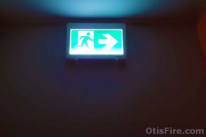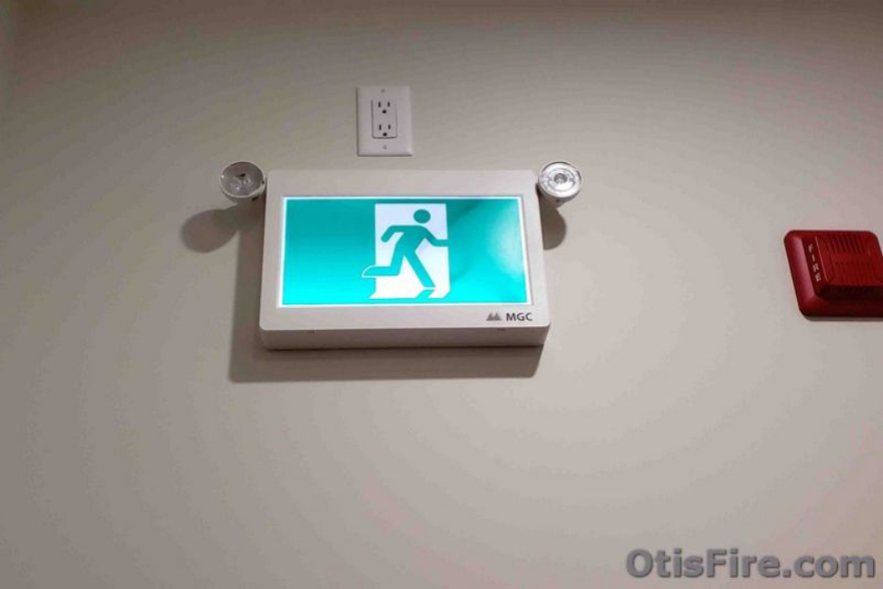 Emergency lighting units and exit signs are battery backup power sources that illuminate in case of a power outage.